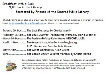 Email kindredpubliclibrary@gmail.com or stop in if you have questions.